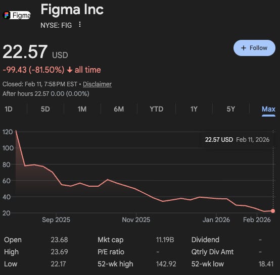 In general, SaaS has had a rough showing in the public market. Even previously hot companies like Figma, which rolled out an aggressive AI suite, including Figma Make and Synapse analytics at Config 2025, have seen their shares struggle, trading at a steep premium while the broader sector remains volatile.