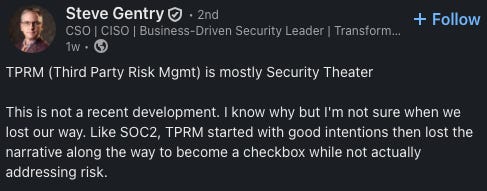 Compliance automation and third-party risk tools: Helpful at first, but quickly become checkbox exercises. It feels like something you can build easily with enough engineering support.